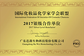 • 獲得IFSCC國際化妝品化學(xué)家學(xué)會聯(lián)盟
